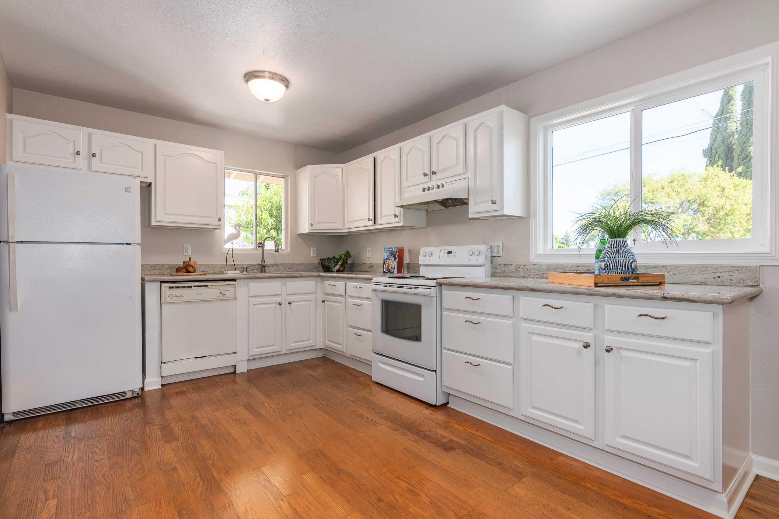 Three bedroom two bath home has an additional sun room that gives you lots of options.  Nicely updated with fresh paint and new carpeting in bedrooms and hall. Hardwood flooring in the living room and kitchen. Light and bright sunroom with plenty of windows. Eat-in kitchen with gorgeous granite countertops and crisp white cabinetry opens to living room.  Large driveway and two-car garage. Conveniently located minutes from Pittsburg Center BART Station, Restaurants, Shopping Centers and Schools.